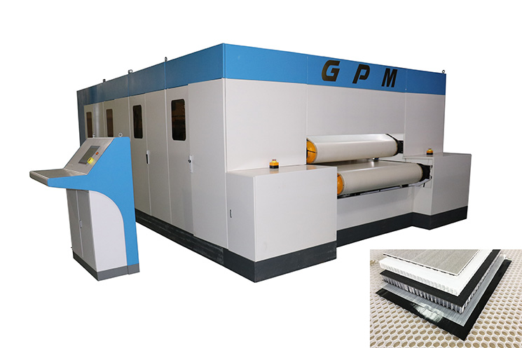 • 特氟龍雙皮帶復合機組用于生產熱塑性蜂窩三明治板和各類熱塑性復合材料層壓板